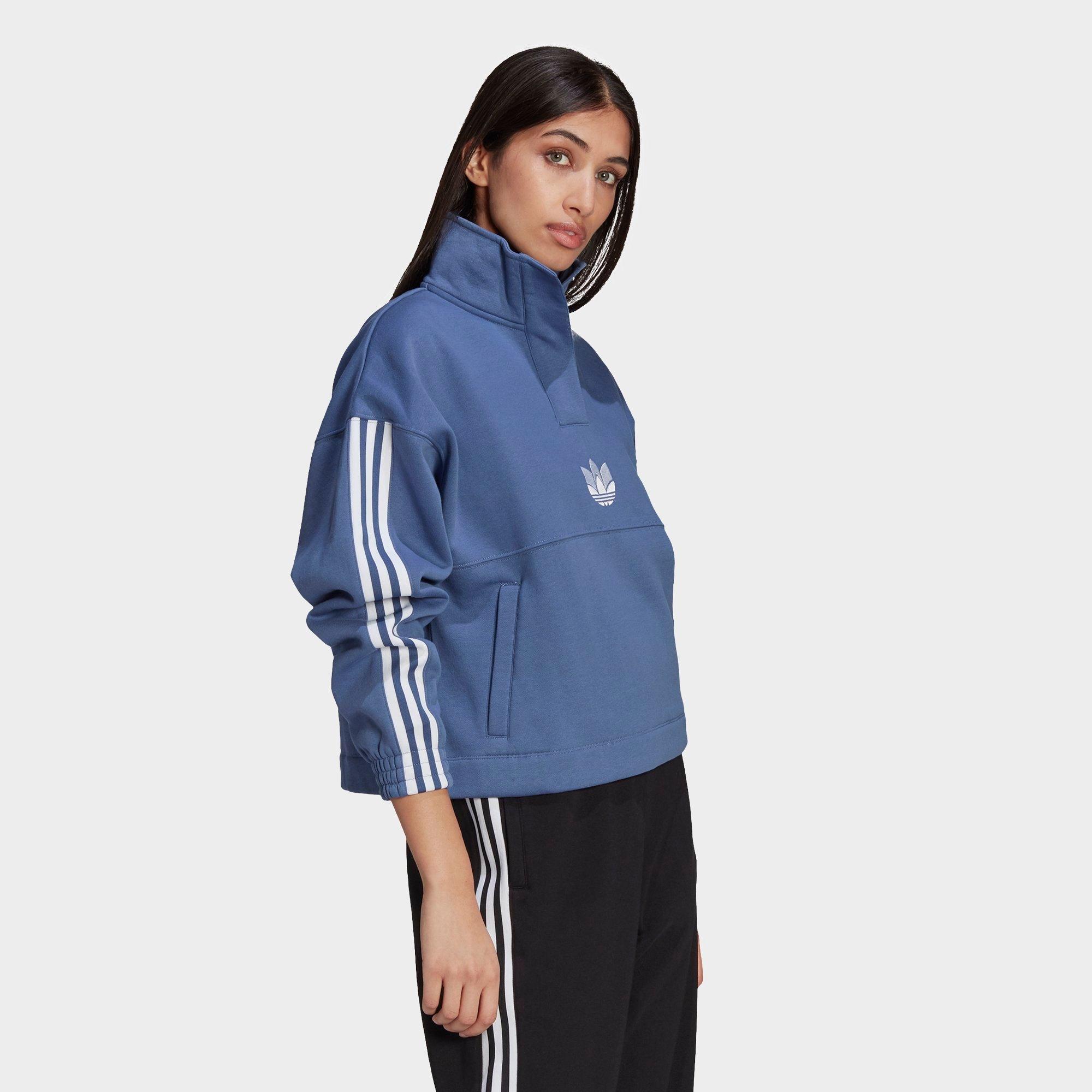 Shop Adidas Women S Adicolor 3d Trefoil Fleece Half Zip Sweatshirt Xl Blue