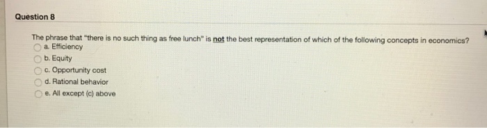 Solved Question 8 The Phrase That There Is No Such Thing Chegg Com