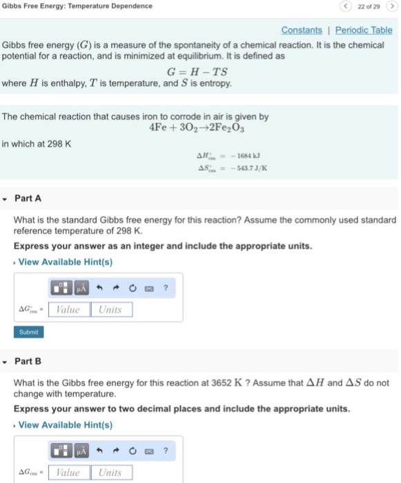 Solved Gibbs Free Energy Temperature Dependence 22 Of 29 Chegg Com