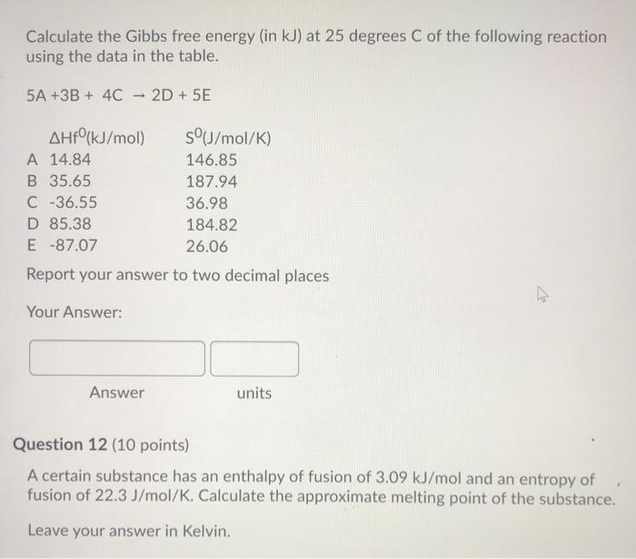 Solved Calculate The Gibbs Free Energy In Kj At 25 Degr Chegg Com