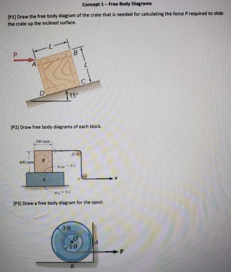 Solved Concept 1 Free Body Diagrams P1 Draw The Free Bo Chegg Com