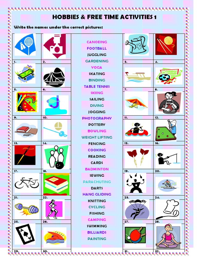 Hobbies Free Time Activities Pictionary Esl Worksheet By Macomabi